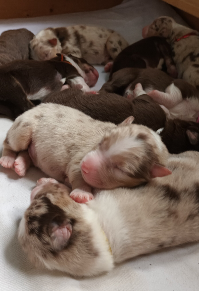 Neun kleine Fellnasen durften am 02.08.2023 das Licht der Welt erblicken. Eines herzerwärmender als das andere und alle wohl auf.
