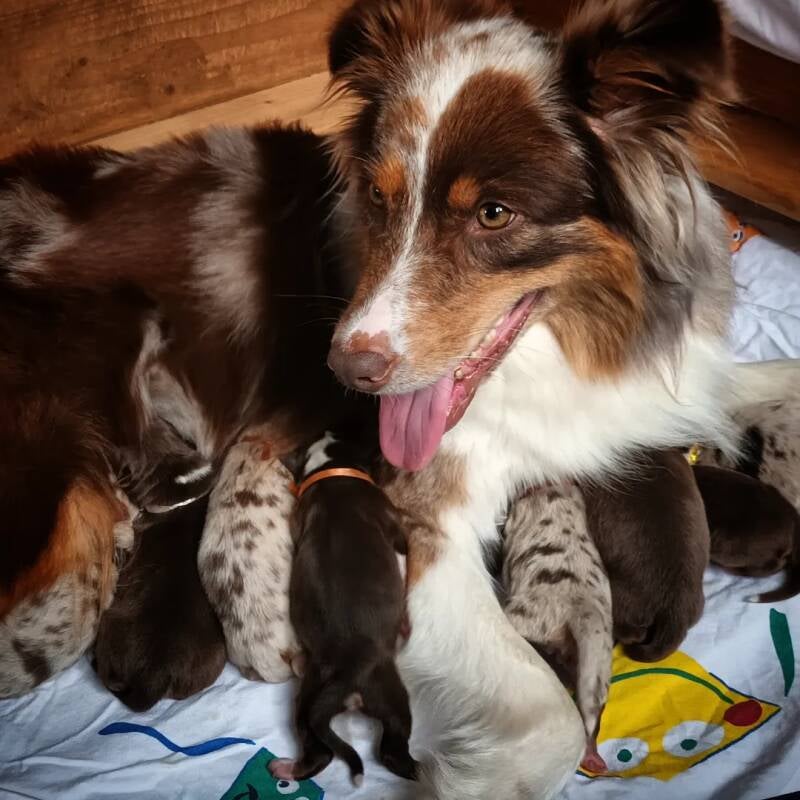 Der erste Morgen. Fidy war die ganze Nacht bei ihren Babys und hat sich liebevoll um alle gekümmert. Nun heißt es wachsen und kennenlernen ❤️