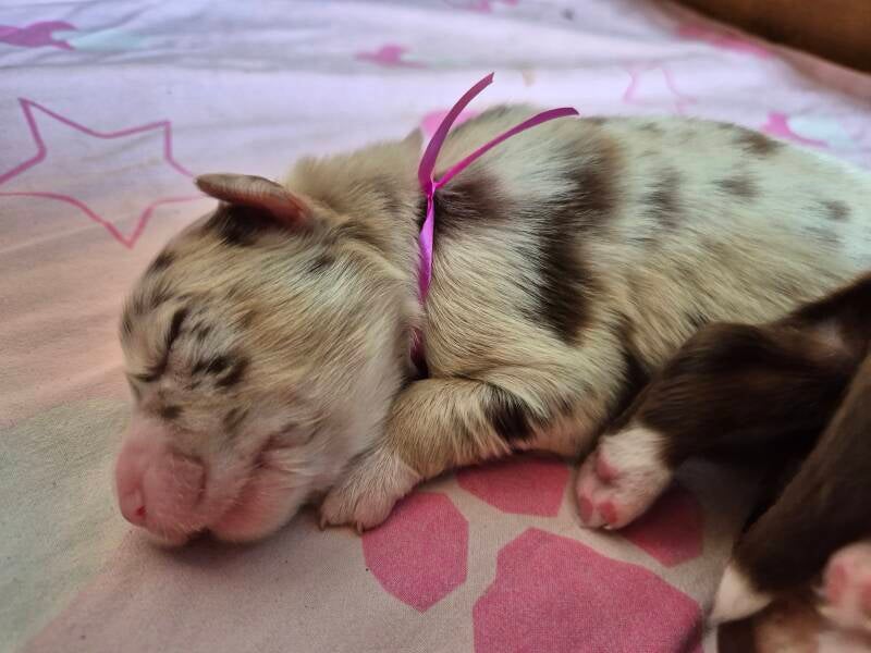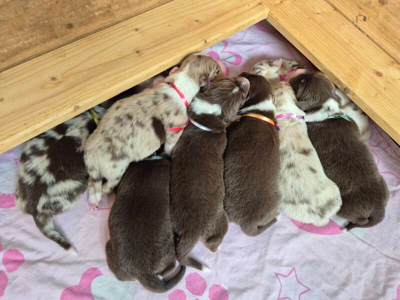 Heute beginnt schon die 6. Woche für die kleinen Mäuse. Somit ist wieder Zeit für eine Wurmkur. Aber auch für die erste Autofahrt und den ersten Tierarztbesuch. Alle Welpen haben die Augenuntersuchung bestanden und können somit in zwei Wochen in ihre Abenteuer mit ihren Familien starten.