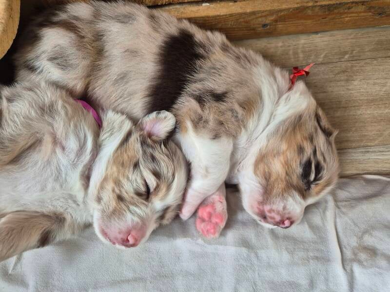 Und schon ist unsere gemeinsame Zeit auch schon vorbei. Wir wünschen euch eine aufregende Zukunft mit vielen Kuscheleinheiten und immer ein paar Flausen im Kopf. Ihr habt euch prächtig entwickelt und seid bestens auf eure Familien vorbereitet. Wir sind Auto gefahren, waren mehrmals beim Tierarzt und sehr oft im Wald spazieren. Ihr habt alle Alltagsgeräusche in Haus und Garten kennengelernt. Seid mit alten und jüngeren Hunden aufgewachsen und auch Katzen, Kaninchen und Meerschweinchen habt ihr gehört und gesehen. Ein besseres Fundament könnt ihr nicht mitbringen. Nun heißt es die Verantwortung abzugeben und euch in die besten Hände zu übergeben, die wir finden konnten. Dennoch werden wir hoffentlich immer ein Teil eures Lebens bleiben und regelmäßig von euch hören. Immerhin seid ihr Teil unserer Familie.