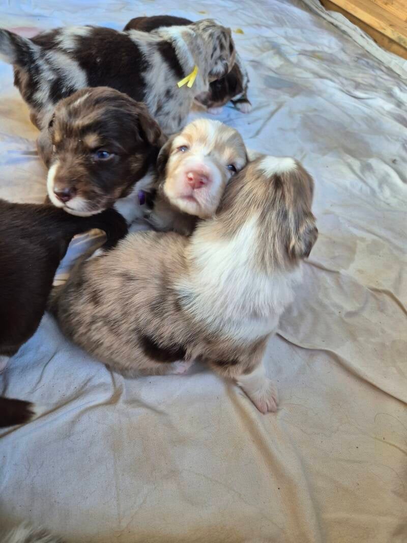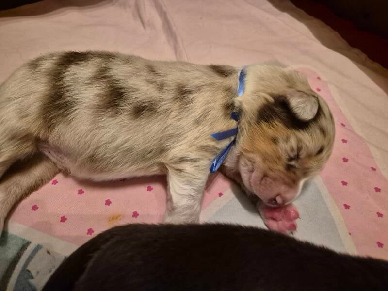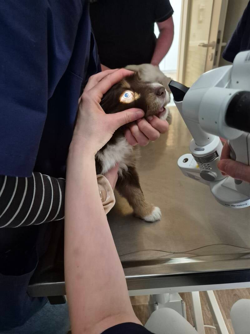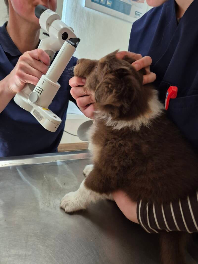 Heute beginnt schon die 6. Woche für die kleinen Mäuse. Somit ist wieder Zeit für eine Wurmkur. Aber auch für die erste Autofahrt und den ersten Tierarztbesuch. Alle Welpen haben die Augenuntersuchung bestanden und können somit in zwei Wochen in ihre Abenteuer mit ihren Familien starten.