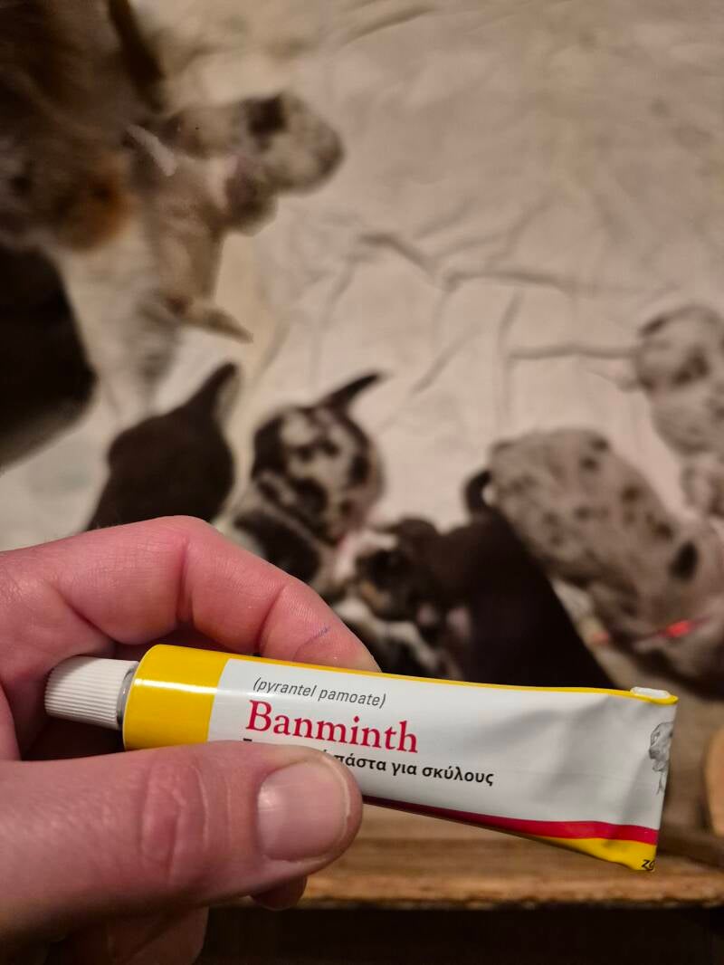 Nach 2 Wochen stand somit auch die erste Wurmkur für die Zwerge an (bzw werden bei uns mit der ersten Wurmkur für die Zwerge auch direkt einmal alle anderen Hunde und die beiden Katzen entwurmt, auch wenn dies bei ihnen regelmäßig erfolgt. Sicher ist sicher).
