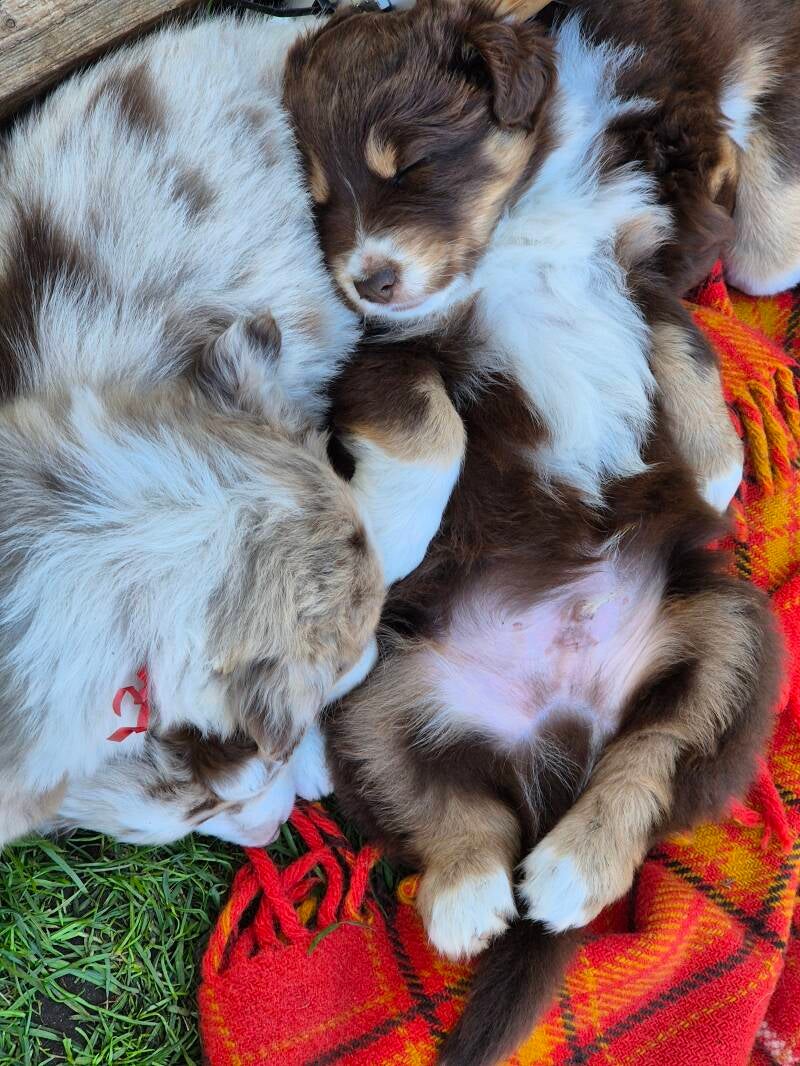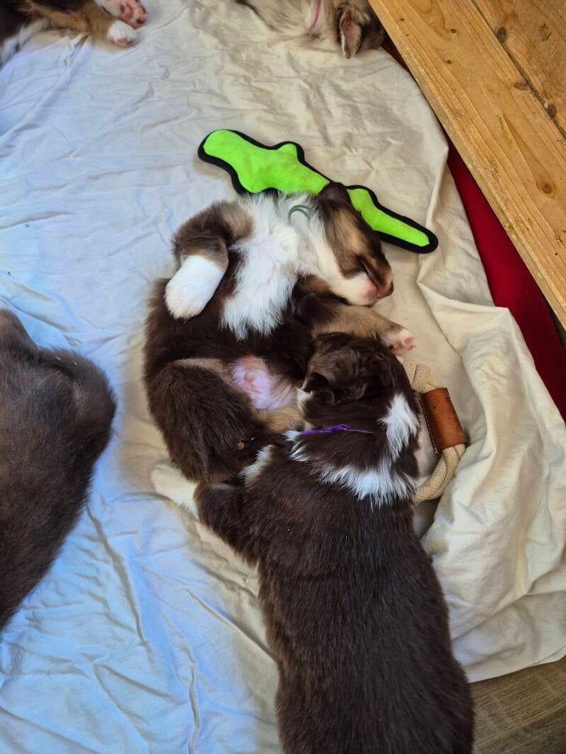 Und schon ist unsere gemeinsame Zeit auch schon vorbei. Wir wünschen euch eine aufregende Zukunft mit vielen Kuscheleinheiten und immer ein paar Flausen im Kopf. Ihr habt euch prächtig entwickelt und seid bestens auf eure Familien vorbereitet. Wir sind Auto gefahren, waren mehrmals beim Tierarzt und sehr oft im Wald spazieren. Ihr habt alle Alltagsgeräusche in Haus und Garten kennengelernt. Seid mit alten und jüngeren Hunden aufgewachsen und auch Katzen, Kaninchen und Meerschweinchen habt ihr gehört und gesehen. Ein besseres Fundament könnt ihr nicht mitbringen. Nun heißt es die Verantwortung abzugeben und euch in die besten Hände zu übergeben, die wir finden konnten. Dennoch werden wir hoffentlich immer ein Teil eures Lebens bleiben und regelmäßig von euch hören. Immerhin seid ihr Teil unserer Familie.